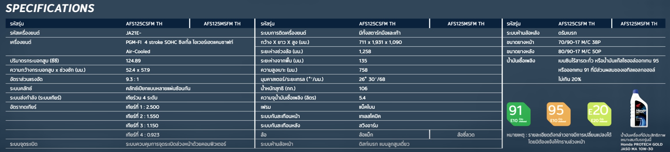 มาพร้อมเกียร์ 4 สปีด สตาร์ทมือ และเท้า รองรับน้ำมันโซฮอล์ 91 และ 95 ความจุน้ำมันอยู่ที่ 5.4 ลิตร