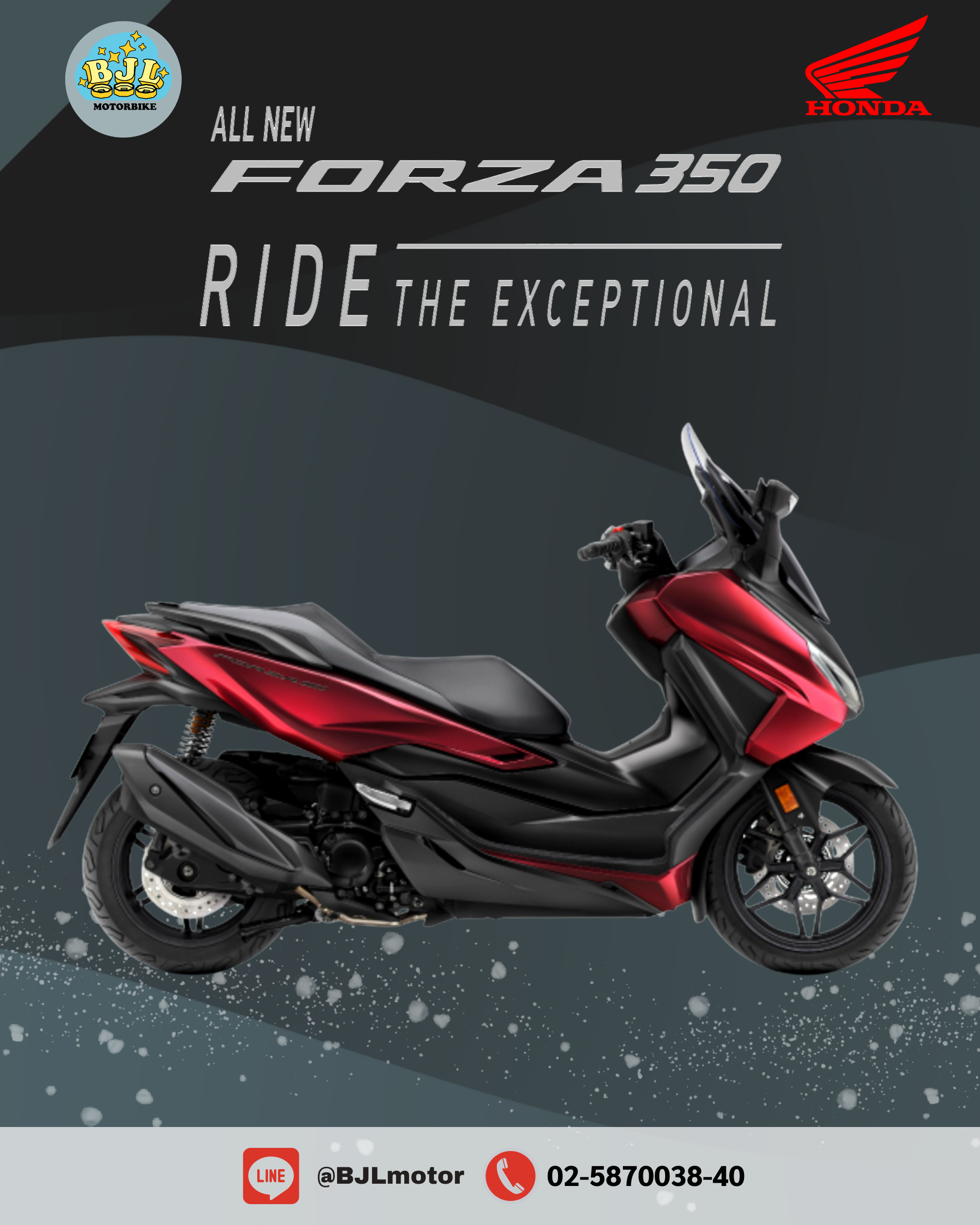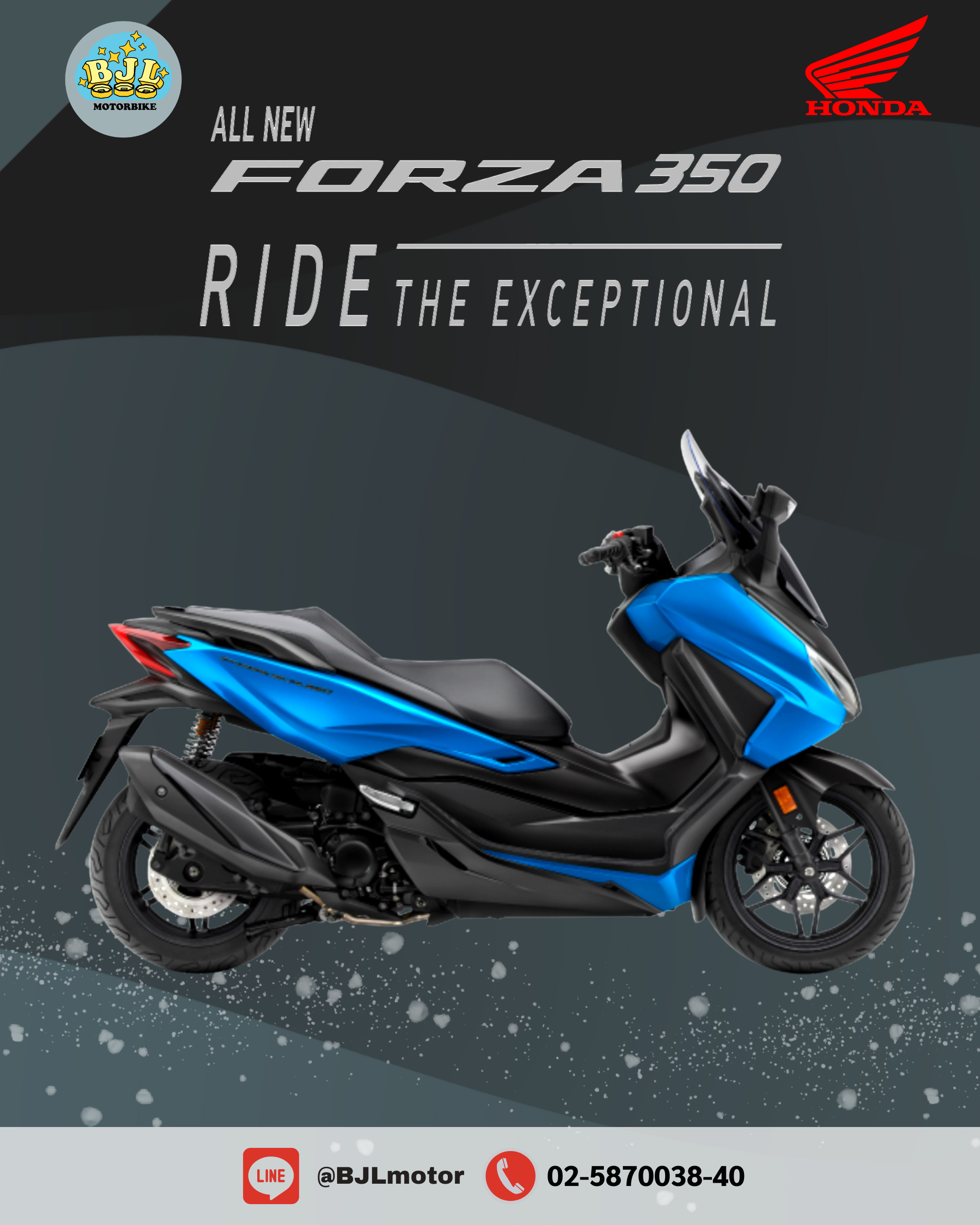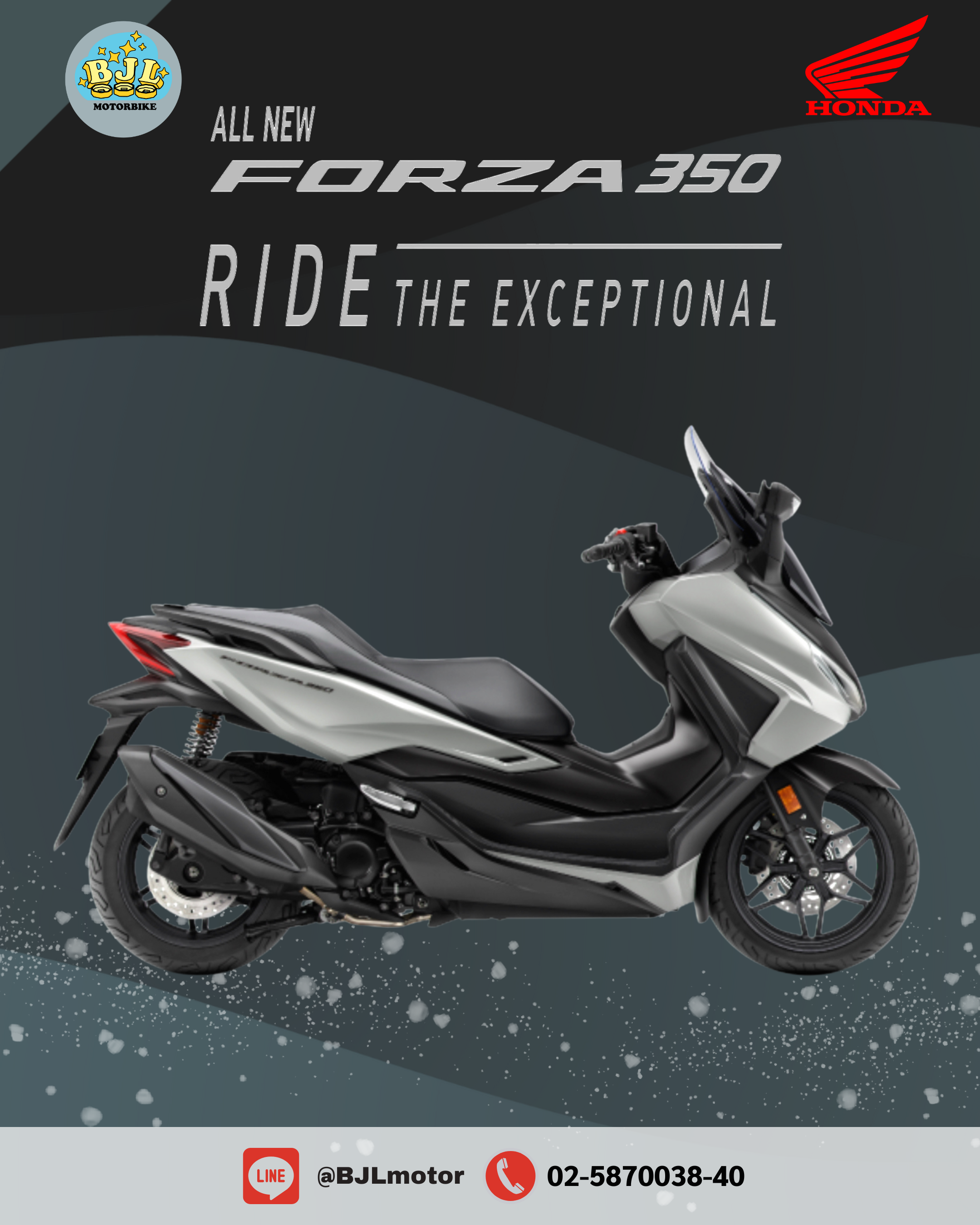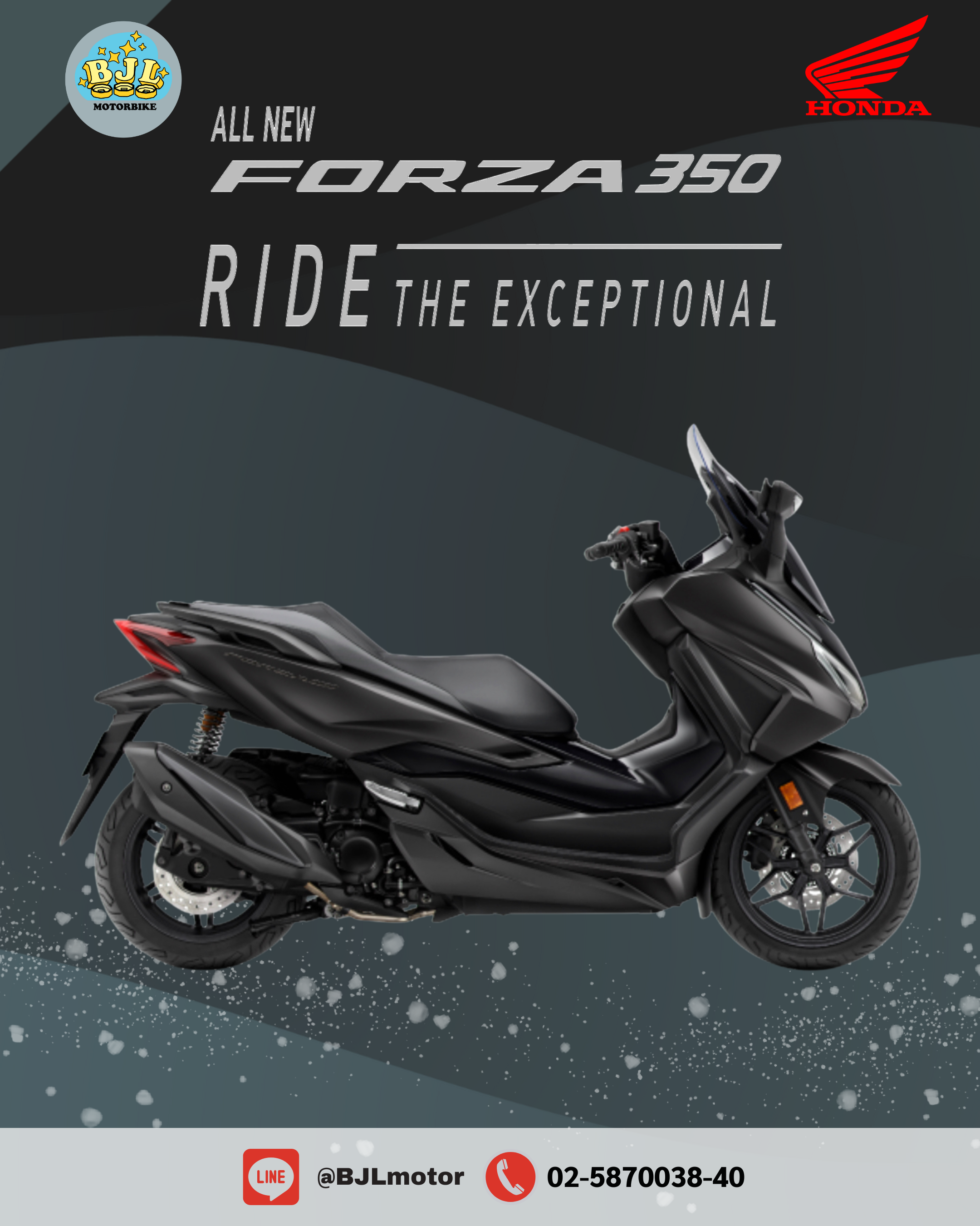 All New Honda Forza 350 มาพร้อมแนวคิด Ride The Exceptional มาพร้อมกับดีไซน์ใหม่ สปอร์ตเรียบหรู เกินคาด ดุดันเกินคลาส ผสานด้วยเทคโนโลยีสุดล้ำ เข้ากับสมรรถนะแรงสุดขีด พร้อมเชื่อมไลฟ์สไตล์ดิจิทัล
